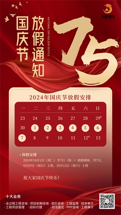 【放假通知】華夏國(guó)際項(xiàng)目管理有限公司放假通知